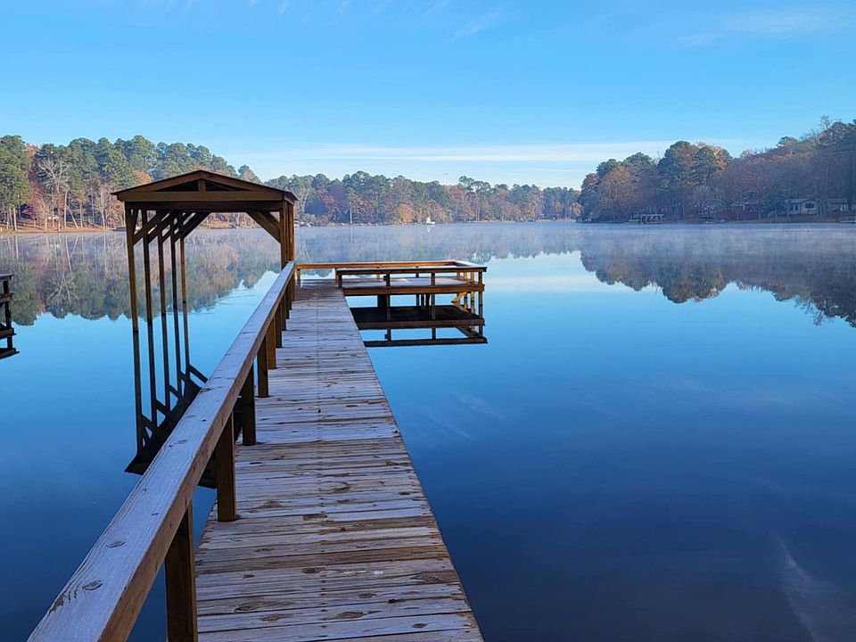 *** MOTIVATED SELLER *** This home is a Hunter and Fishermans paradise of East TX known as Brookhaven in the Pines located nestled on 65 acres of Brooks Lake surrounded by 700 plus acres of woods & trails for hunting. Brooks Lake is spring fed & stays a constant level. Fishing here is absolutely wonderful with Huge Bass & Crappie! If you love to fish, you have your own private deck that has a huge dock with bench seating, lighting & electricity with fresh water, covered boat dock built strong enough to add boat lift if you wish! So lets talk about the exterior of the property first! Foundation has been reenforced concrete slab, Home is equipped with 2 separate 30 amp plug in for RV hookup. One in the front of the home and one at the side of the home. Electrical wiring for future generator connection. Port for dump station for your RV as well, dirt pad leveled for future shop build, concrete retaining wall at front of property, privacy wall on back covered patio, fans and electrical installed on patio deck, motion security lighting. NOW the inside of this NEW construction home! The home is Hardie Plank siding and Metal roof! The home has luxury laminate flooring through out, vaulted ceiling in the living room with beautiful wood ceiling with beam. The kitchen has amazing butcher block counter tops with under cabinet lighting, can lighting on dimmers in the living room, kitchen and patio. All windows have new blinds, upgraded finishes and hardware in kitchen and bathrooms. The Primary bedroom is large with an ensuite bathroom. The bathrooms are elegant and have upgraded hardware and vanities. Enjoy sitting on the back patio or on your boat dock enjoying the beautiful sunrises or sunsets, or fishing from your own private dock, or taking your boat out on the lake for fishing as well. Bring your paddle boats,or kayak's! This amazing lakefront home is for everyday use or if you just need a weekend getaway! Home is located less then 2 hours from Dallas, Tx
