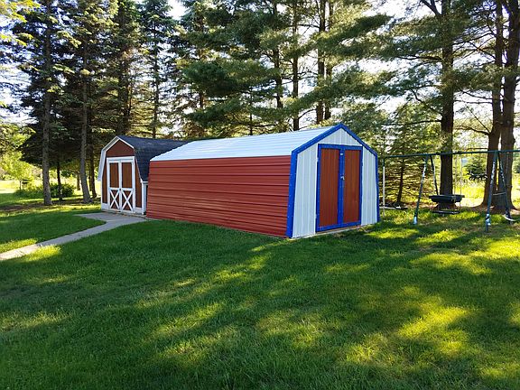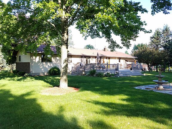 Nestled is the country on approx 4 wooded acres is this beautiful custom built ranch home. Inside you will see custom built kitchen cabinetry, and beautiful oak flooring in the kitchen and dining area. The patio doors off the dining room leads to a huge 20 x 32 maintenance free patio. Also features oak trim throughout the home. Large laundry room on the main floor, 3 bedrooms with 2 1/2 baths and large living room with fireplace. This home is heated and cooled with an energy efficient geo-thermal system. Outside you will see lots of flower garden areas, plus a 30 x 40 pole barn. Property offers a great location for the hunters with hundreds of acres of state land nearby. Room sizes include living room 15 x 20, kitchen 10 x 11, dining room 10 x 13, laundry room 8 x 11 and bedrooms are 15 x 16, 10 x 12 and 9 x 10.