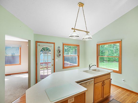 This meticulously constructed home offers a symphony of charm & comfort. Step inside & be greeted by soaring cathedral ceilings that create an airy & expansive ambiance. The oversized kitchen offers an abundance of cabinetry & large kitchen island perfect for whipping up gourmet meals for family & friends. The living room, designed for entertaining, boasts an impressive stone fireplace & seamlessly flows into the dining room great for large gatherings. Escape to the serene master suite, a private sanctuary overlooking the picturesque, wooded backyard. Sink into the luxurious jetted tub in the master bath, creating a spa-like experience. On suite offers a stand-alone shower as well. Many wonderful features make up this delightful property!