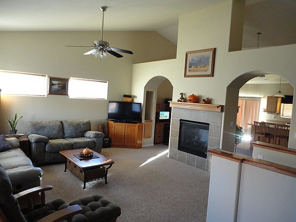 Welcome home to this ranch style home! This 3 bedroom, 2 bathroom home offers an open floor plan, new flooring, gas fireplace, main floor laundry, large master suite with a garden bathtub. Additional features include an unfinished walkout basement, central air, newer hot water heater and a new garage door. Enjoy the fully landscaped yard with a deck offering beautiful mountain views, 2 car garage and a front porch great for sipping your morning coffee.