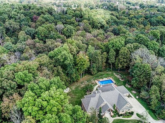 Welcome home to your own private retreat! 7000 sqft sitting on 5.7 acres in convenient Bellbrook location. The well thought out design captures amazing natural light and beautiful views of the wooded lot and adjacent 18 acre nature sanctuary. As you drive down the long, inviting driveway you will immediately notice the large A-Frame entrance and solid mahogany door. Step inside and you will be impressed with the Brazilian cherry floors, stone fireplace in the massive great room and private study. The gourmet kitchen features a large marble top center island, quartz countertops, lighted cove ceiling, and an abundance of countertop/cabinet/pantry space. The outdoor living space turns this house from an A+ to an A++. The Veranda with stone pillars and beadboard ceilings looks onto the newly installed heated pool and firepit. Peace and Nature are in your backyard! The spa-like Master Suite and full finished walkout basement complete this masterpiece. Don't miss out on your forever home!