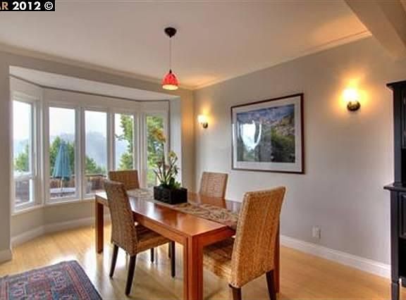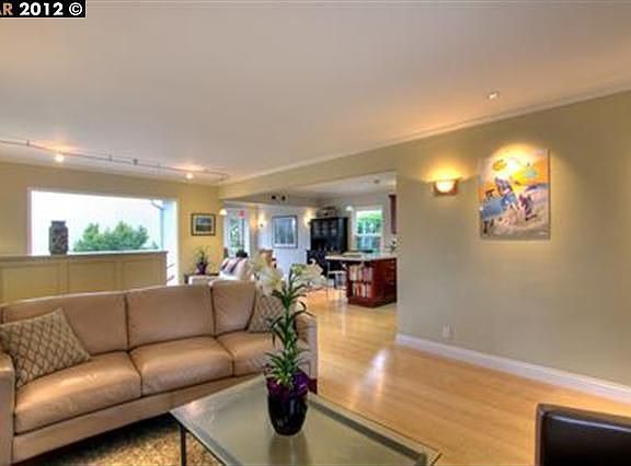 Green Living in the Hills! Exquisitely remodeled w/brick entrance courtyard & designer landscape. Lg. remodeled kitchen, open floor plan & eco-friendly improvements: bamboo floors, wool carpets, double paned windows and rooftop solar! Formal dining overlooks back lawn, deck & filtered bay views.
