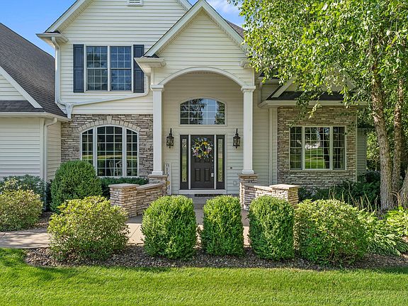 Top quality & craftsmanship! Priced below assessed value! Constructed by a builder for his personal home, there are plenty of extras! The 2 story great room features floor to ceiling stone accents & custom built-ins on each side. The back wall of windows offers views of mature trees & brings in the sunshine! Custom Liptus cabinetry & stainless appliances featured in the chef's kitchen. Main floor master bedroom suite features crown molding, spacious walk in closet & luxury master bath. The 2nd level offers two bedrooms, full bathroom & stunning open railing to the great room. The finished walk out lower level will be great for entertaining! Custom designed wet bar with multiple fridges & glass shelving. 5th NC bedroom & nice rec room plus stairs from garage down to LL.