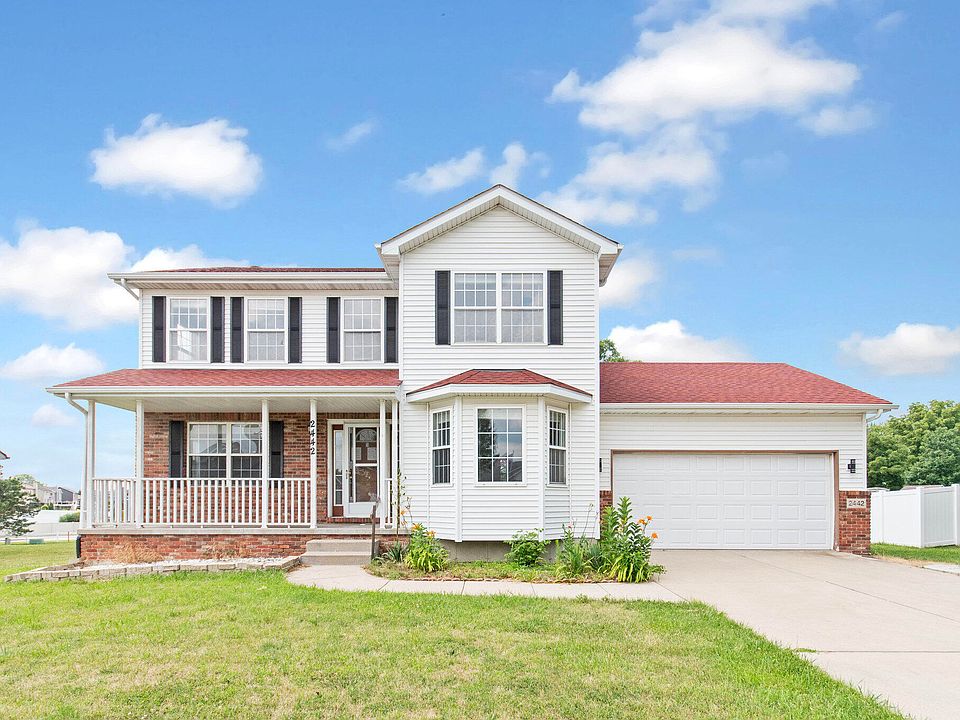 Charming 2-story home with 4 bedrooms, 2 full baths, and 2 half baths. The living room has lots of natural light, and the family room features a cozy fireplace and a sliding glass door to a second-story deck. Enjoy a large eat-in kitchen with a pantry and a cool mosaic tile backsplash, plus a separate dining room. The primary bedroom has a tray ceiling, walk-in closet, and a private bath with a jetted tub. The finished walkout basement includes a big rec room, an extra room for an office or 5th bedroom, a laundry room, and a half bath. The backyard offers a beautiful view of mature trees perfect for summer BBQ's. Don't miss the full layout of this home in the photos! Case # / 156-460303 Insured Status IE (FHA Insurable + Escrow)