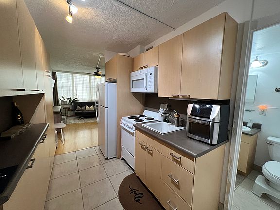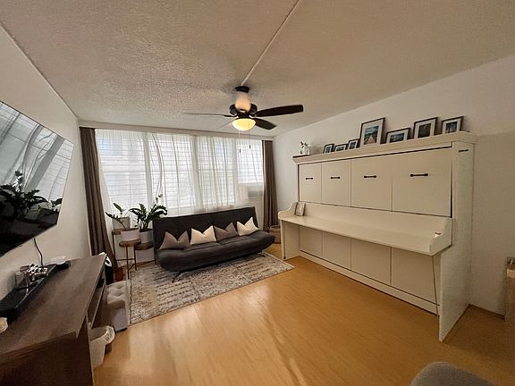 Updated Ainahau Gardens studio in Waikiki is available now! This fully furnished, clean and bright studio comes equipped with a range, refrigerator, microwave hood, ceiling fan, A/C, murphy bed, couch and fully stocked kitchen including kitchenware. Just bring your suitcase and you are home in your own retreat. The building has a secure elevator and coin laundry on each floor. Parking maybe available at an additional charge. Water/sewer is included. Tenant responsible for electricity, internet and cable. Located close to bus lines, shopping, restaurants and the beach. There is a $25.00 non-refundable application fee due upon submission of the application. Credit/references are checked.