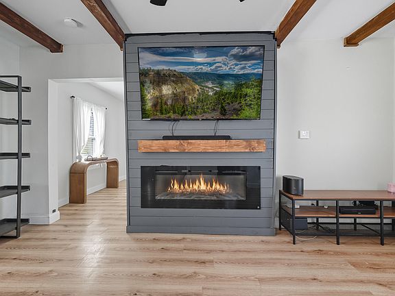 Cozy living spaceElectric fireplaceSpacious patioBrand-new stainless steel rangeStunning backsplashPrivate backyardCustom-built island