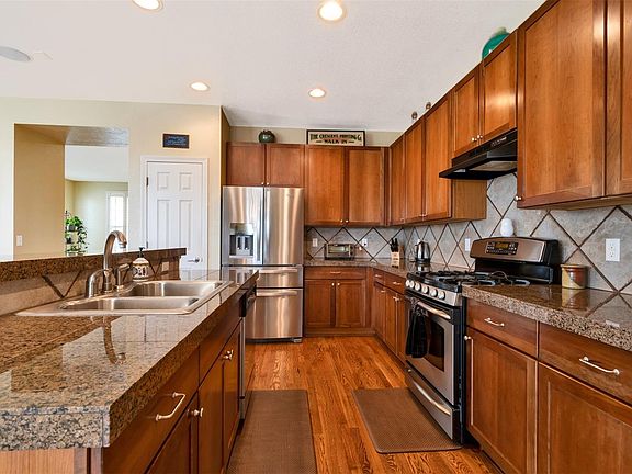Gorgeous Ranch Style home in the coveted Cross Creek Pool Community! Boasting many upgrades: 42-inch Cherry Kitchen Cabinets w/Custom Title Backsplash * Stainless Appliances including Refrigerator, Gas Stove & Dishwasher * Granite Tile Countertops/Kitchen Island/Breakfast Bar * Extended 9 Foot Ceilings on Main Level * Beautiful Oak Hardwood Flooring & 5-inch Baseboards throughout Main Floor PLUS Upgraded Carpeting in the Bedrms * Remarkable Bedrosian Tile in all Baths * Classic Plantation Shutters * Cozy Gas Log Fireplace * Built-In Surround Sound in Family Room * Convenient Main Floor Laundry * Oversized 2.5 Car Garage * Professionally Xeriscape Back Yard w/Garden Beds * Maintenance Free Trex Deck w/Pergola * Private Fenced Back Yard w/NO Neighbors Behind * Partially Finished Bsmnt w/Large Media Room (Screen & Projector Included) * Guest Bedroom in Bsmnt & plenty of Extra Storage Space * Covered Front Porch * Short Walk to the Park & Vista Peak K-8 * A Must See!