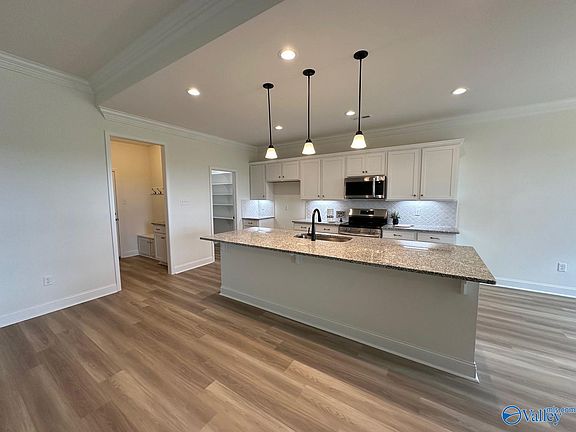 - Features: Crown Molding, Granite Counters, Kitchen Island, Pantry, Recessed Lighting, Smooth Ceiling, LVP