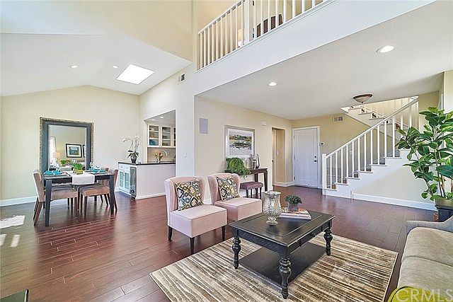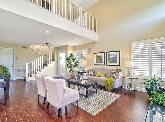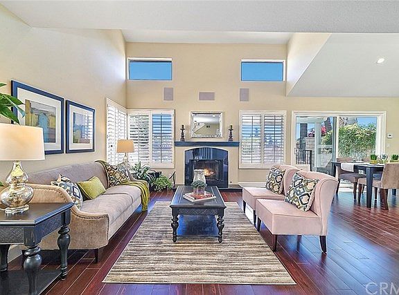 Gorgeous turnkey home in Laguna Niguel that has everything you are looking for! Gated front courtyard leads you to this stunning 2 bedroom + loft area, 2.5 bath & 2 car garage residence. Enter into the open concept floorplan w/ soaring ceilings & an abundance of natural light. Gleaming porcelain tile floors, plantation shutters, brand new plush carpet & crown molding throughout. Entertain or unwind in the spacious living room featuring a fireplace, surround sound & backyard views. Gourmet kitchen features custom showcase cabinetry, European self-closing hardware, contemporary backsplash, trey ceiling, wine refrigerator & dining room with sliding glass door to the backyard. The upstairs loft area features vaulted ceilings & first floor views creating the perfect space as an office or bonus room. Both the master bath & guest bath have been upgraded w/ Carrera marble & Hansgrohe fixtures! The serene master retreat features soaring ceilings & his/hers closets. An additional spacious bedroom completes the top floor. Take a dip in the bubbling saltwater spa w/ waterfall or dine al fresco on the over-sized patio surrounded by trees, flowers & artificial turf. The 2 car garage provides additional storage space & built-in work bench! Take advantage of all the wonderful association amenities including beautiful walking trails, sport courts & playground. A variety of shops, restaurants, recreation & award winning schools nearby. Less than 5 minutes to the sparkling Pacific Ocean!