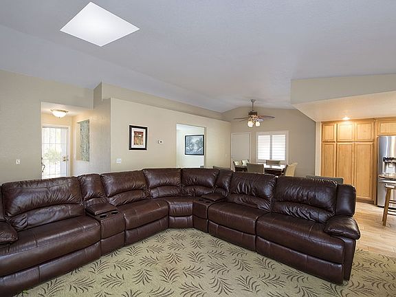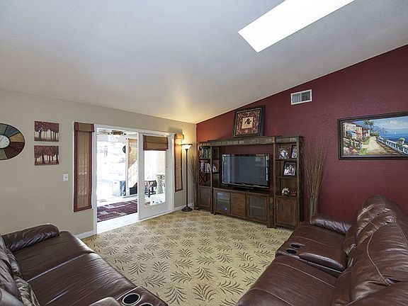 Come home to your own personal paradise! This beautiful 4 bedroom, 3 bath offers an ideal floor plan with 2,255 sq. ft. Large island kitchen, formal living room and separate family room. Features include plantation shutters, vaulted ceilings and skylights. Tropical backyard setting with salt water pool with waterfall, spa and palm trees. The landscape surrounding the property is low maintenance with grape vines and citrus trees. 33 Owned solar panels! Everything is done just right...move in and enjoy! Seller will Entertain Offers between $569000 - $579000