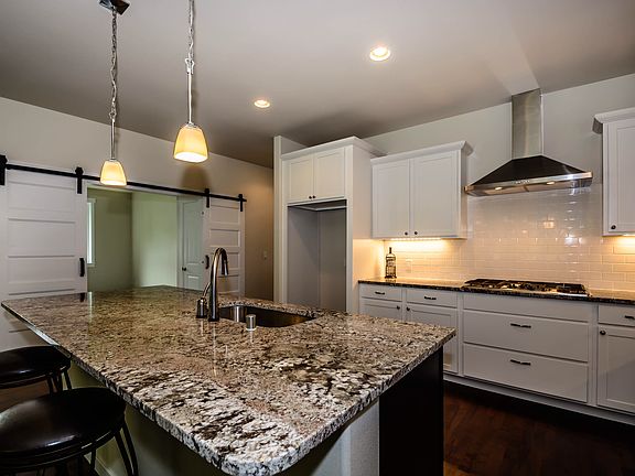 MUST SEE! Gorgeous new home w/L island in kitchen: upgraded Whirlpool DW, wall oven, range, microwave and under cab lights. Sliding barn doors into den/office/4th bed. Full slab granite thru-out. Stunning pre-engineered hardwoods, upgraded carpet, & porcelain tile floors. L master bed w/XL walk-in closet & luxury on-suite: dbl sided fireplace over soaking tub, heated floors, and frame-less glass shower. 264 sq. ft. of covered patio on green belt. Exterior LED lights & RV Parking. AMAZING!