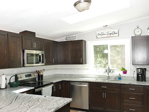 Pride of ownership in country living! New roof August 2020! Brand new kitchen remodel completed in May '20, includes new Granite, new custom cabinets with 2 Lazy Susans and 2 no reach cabinets. New appliances. New windows and skylight. Ceramic tile. Master bath paint and new exhaust fan. New light fixtures in and out. 2000 sq ft patio for outdoor living. RV parking. New doors, trim and paint through out whole house. Hummingbirds, privacy and seasonal creek. This is a must see!