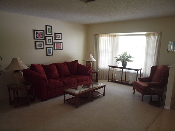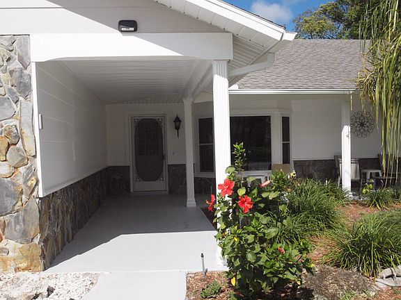 MOVE IN READY! Well cared-for Buttonwood model with a spectacular view of the 3rd green of the Lakes golf course in beautiful Timber Pines. Split plan with huge master bedroom, ensuite bath, and walk-in closet. Price includes all furniture, window coverings, appliances, televisions, light fixtures, dishes, kitchenware, and more -- just bring your suitcase and golf clubs and enjoy! New windows and AC/heat pump (2015). All new appliances (2017). Exterior, driveway, and porch freshly painted (2019). Screened lanai features roll-down storm shutters. Wi-fi thermostat and irrigation system controller. Whole house water softener (2014). Cable TV and internet included.
