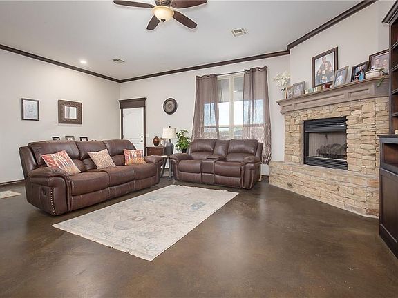 Check out this beauty in the Blanchard school district. This home is likely to steal your heart with its open floor plan and ability to accommodate. Step inside to concrete flooring and a large living room with a dry-stack stone fireplace. A great way to keep warm on those colder evenings. The kitchen is set up for the chef in your family. A spacious island makes prep work easy and the pot filler over the stove makes cooking in a large kitchen convenient. The dining room can accommodate a large table. The master bedroom is oversized and has an en-suite bathroom with a walk-in closet and built-in vanity space. The laundry room has a 5 x 5 walk-in shower so you can easily wash away the days work before heading out to the back covered patio and enjoying a cold beverage while watching the sun go down. Need room for the in-laws? There is a separate apartment on the property that has one bedroom, one bath, kitchen and laundry set-up. NO RESTRICTIONS: CAN BUILD A SHOP