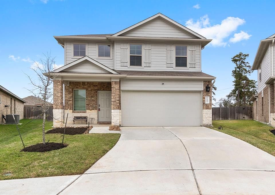 Welcome to this like-new construction Express home! With fantastic curb appeal and a thoughtfully designed floor plan, this home offers open living spaces, modern finishes, and stylish designer touches throughout including: --tankless water heater --purified alkaline faucet --entire whole house water softener --covered patio --new LVP flooring --comes with KitchenAid counter depth tall dual door Refrigerator --new oven to be installed Located in a prime spot, Breckenridge Forest boasts incredible amenities, including parks, trails, and more. New stove will be installed before closing.