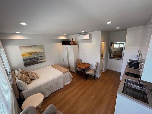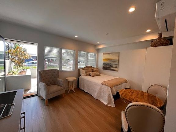 Brand new furnished studio with a large patio in Cardiff, west of 5. Close to the beach, shops, restaurants, Park, etc. Appliances include air conditioning, washer and dryer, cooktop, refrigerator, air fryer, food processor, blender and toaster oven. Comfortable queen bed with ample storage. Park your car right up front and walk in your brand new, tastefully designed sanctuary. AVAILABLE FOR RACING SEASON. Short term leasing available. Tenant pay for gas & electric. No smoking. Street parking.