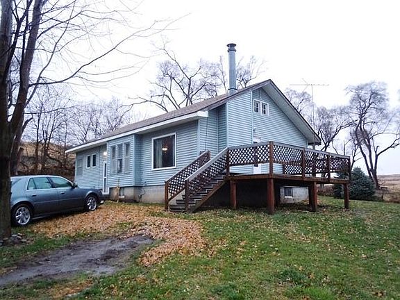 Small,secluded acreage in need of some TLC. Block basement was new in 2004. Basement is partially finished with a couple of nonconforming bedrooms, and a full bath. This home could easily be a 5 bedroom. Kitchen, LR/DR combo, full bath, 2 bedrooms and laundry on the main level. Composite decking on the front and South side. There's a 3 car detached metal garage with a dirt floor. Septic was new in 2003.
