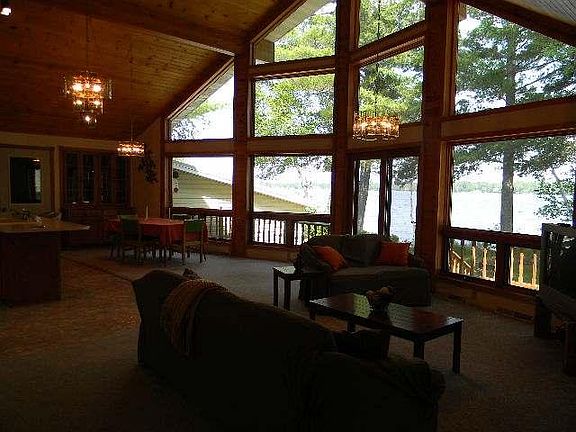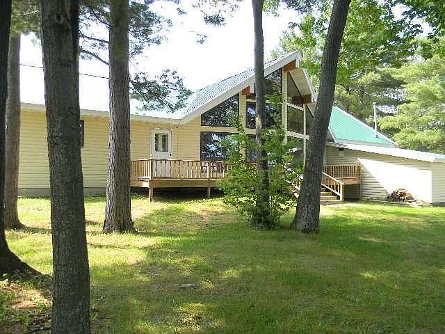BEAUTIFUL CHALET STYLE YEAR ROUND HOME WITH LEVEL SAND FRONTAGE ON 3500+ ACRE PELICAN LAKE! THIS HOME COULD EASILY BE MADE HANDICAP ACCESSIBLE WITH THE 36" DOORS. STORE YOUR TOYS & BOAT IN THE ATTACHED BOAT HOUSE! WONDERFUL VIEWS FROM THE FLOOR TO CEILING WINDOWS FACING THE LAKE! SPACIOUS ROOMS, OAK CABINETS & TRIM, SOLID WOOD DOORS, METAL ROOF, 2 CAR ATTACHED GARAGE IS INSULATED & CAN EASILY BE HEATED WITH THE PELLET STOVE INCLUDED IN SALE, PLUS ATTACHED BOAT HOUSE! INCLUDED LAND ACROSS THE ROAD - FOR EXTRA PARKING OR POSSIBLY AN EXTRA GARAGE!