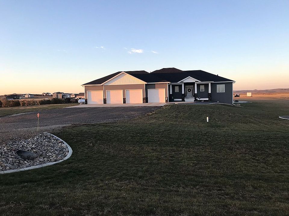 Sale pending Harmon Lake Home for sale with 2 acres FSBO finished in 2016 -2585 finished sq ft upstairs -1732 sq ft, 4 stall garage-finished, insulated, and heated -2585 sq ft in the Basement It is framed out with 2 bedrooms, a bathroom, a wet bar, and a huge entertaining area. There is wood down there for a third bedroom as well or an office. Also insulated. All plumbing is hardpiped, with a shower tub down stairs already. -The sheetrock to finish the basement is down in the basement already -Security system -Indoor/outdoor speakers throughout the house -Surround sound in the family room -Steel Siding -Pella windows with blinds inserted Inside -3 Bedroom house, 2 1/2 bath-Bedrooms are very big 14x14 -Dual furnace that can run propane/or electricity Kitchen -Double ovens -Soft closed cabinets throughout whole house -Whirlpool appliances -Granite countertops Master -Bedroom is HUGE, 19 x 14 -His and Hers closets 6 x 10, 7 x 8 -Huge soaker tub with double vanity -Double shower head in custom tiled shower Outside -Maintenance free front deck -Concrete pad in the back 19 x 11 -Beautiful stamped concrete fire pit -Huge covered porch in the back 15 x 12 -Yard is completely finished with concrete curbing Call for a showing! 7015277997
