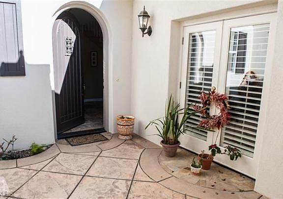 Highly upgraded Tuscan estate with flagstone and stucco exterior! Beautifully landscaped with palm trees and custom hardscaping! Water saving and Drought tolerant yard both in front and back, perfect for water starved SoCal. Gated courtyard leads to impressive arched entryway! Gorgeous custom travertine floors downstairs! Finished one car garage offers additional living space for guests or in-laws with extra bath! Custom painting, plantation shutters and french doors are spread throughout! Living room offers high ceilings, plenty of windows and light, gas fireplace and wood floors! Warm fam. room offers rock fireplace, recessed lights and crown moldings! Spacious granite kitchen with rec. lights, custom tile backsplash, computer desk area and upgraded faucets! Bedrooms are large and spacious! Private backyard is well landscaped with trees, concrete patio, grassy area, concrete/flagstone BBQ area & flagstone firepit conversation area! Enjoy the mountain and valley views from the upstairs balcony with archways! Home has leaf guard protection for gutters with life time warranty. A custom one of a kind home!