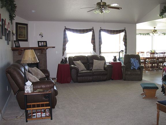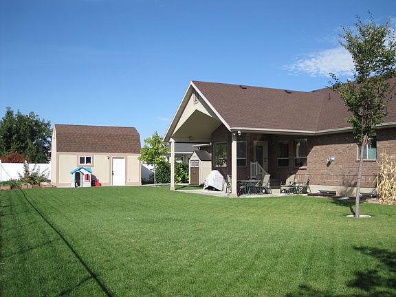 Custom-built brick home in golf course community, with in-law apartment. Main level: 3 bedrooms, 2 1/2 baths. Master suite with large bedroom, bay window seat, reading lights, crown molding with indirect lighting, stereo speakers; bathroom with cultured marble jetted tub and shower surrounds, double sinks; large walk-in closet. Ceiling fans throughout home. Large laundry/sewing room/mud room with lots of cabinets, ½ bath; Kitchen has custom cherry wood cabinets with granite counter tops, gas oven/range, over range microwave, refrigerator with water/ice dispenser, granite under-mount double sink with moen faucet, large island, bay window dining nook with door to back patio. Brick fireplace with large cherry wood mantel; central vacuum system; whole home stereo system; video surveillance system; motion sensor security lighting; solar powered attic ventilation fan; internet and TV cable throughout, wheel-chair accessible throughout. Downstairs: Large guest suite (bedroom, sitting area & bathroom). Fully self-contained 2-bedroom in-law apartment. Master suite with large walk-in closet, ceiling fan, bathroom with cultured marble tub & shower surrounds, washer & dryer hookups. Living area with fireplace, ceiling fan, central vac, large u-shape kitchen with bar, large walk in pantry, 8 x 12 storage room, electric stair lift on basement walkout stairs inside the garage, sound-insulted ceiling. Bonus Room/Home Theater: 12 x 22 ft, wired for 5.1 surround sound, closet with shelves for DVD’s, snack bar, laminate floor, ceiling fan. Garage: 3-car with 240 sq. ft. heated shop in extra deep bay, keyless entries, wheel chair ramp, electric stair lift for basement apartment. Yard: Covered front patio with courtyard and waterfall feature, vaulted covered back patio with stereo speakers & west side roll up shade, fully fenced, mature grape vines, raised garden boxes, shade trees, security window well covers, automatic sprinkler system. RV pad with two-story 12 x 20 detached garage/shed, video security surveillance cameras and recorder.