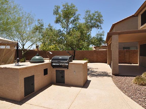 BEAUTIFUL 4 bedroom/2.5 bath home in the DESIRABLE area of the Dynamite Mountain Ranch community. This home features a GORGEOUS, UPDATED kitchen with granite counter tops, stainless steel appliances, gas stove/double ovens, walk-in pantry, eat-in area and convenient breakfast bar. The backyard boasts a HUGE built-in BBQ and Smoker, fire-pit, separate covered patio with TV included and wired for sound...an entertainers DREAM!!! Entire home has PLANTATION SHUTTERS, dimmer-switches, surround sound, and TONS of recessed lighting in all the right places. LARGE Master with 2 closets, dual vanities and large soaker tub. Newer A/C unit with upgraded HEPA filtration system. Epoxy flooring in garage. Wired for security. Close to I-17/101/303 and less than a mile from the Shops at Norterra!!