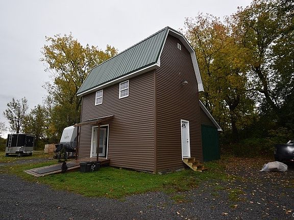 Country Living just minutes from city amenities and 3 miles from Fort Drum gates. This 4 bedroom home has unique, custom features throughout; including open living area with cathedral tray ceilings. Large bath with double vanity and laundry area, complete with washer & dryer. New siding, gas furnace, central a/c, water heater, and electrical all within last 5 years. New windows and metal roof 2016. Located on 1.44 acres with back deck, amazing yard, and garage like no other. Lower "garage" has entry from 2 sides and room for all the toys, tools, or just hanging out. 3rd entrance goes to upper unit previously used as guest suite. Additional storage barn stays on the property. Public Water too!! Too many details to list. Come take a look !!