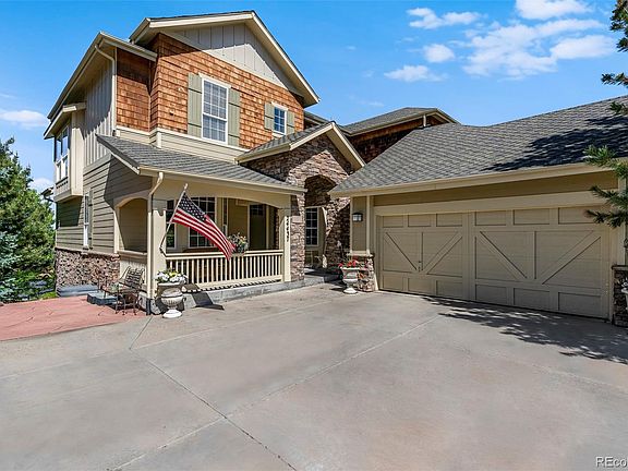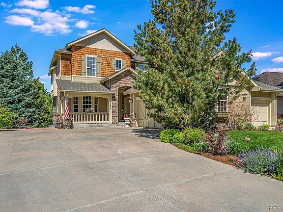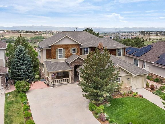 Beautiful Writer home in desirable Tallyn's Reach. Open space and sweeping mountain views! Immaculate 2 story ideally located on a private street buffered by a treed berm and backing to Kestral Point open space. The charming front porch welcomes you into the home where the main floor flows freely from the kitchen with new appliances and private patio, to the family room and office with double sided fireplace, formal living and dining, 1/2 bath and main floor laundry. Upstairs features the spacious main bedroom with huge walk in closet, a secondary bedroom with attached full bath and 2 additional bedrooms. The newly finished walk out basement is amazing with a spacious great room, wet bar, bedroom, 3/4 bath, media/theater room, storage and a lovely patio. There are hardwoods, art niches, and crown moulding. The deck has views from Pikes Peak to Longs Peak and overlooks open space. Multiple stamped concrete patio areas and professional landscape grace the perimeter. Extensive walking paths throughout the neighborhood flanked by Ponderosa pines and other lush tree and plant vegetation, an incredible clubhouse, Cherry Creek schools, Southlands and much more! Tallyn's Reach homes were built to fit in with the natural Colorado landscape and this home exemplifies that!