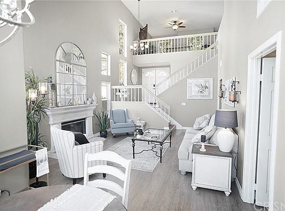 Back on market at no fault of seller.This Gorgeous Townhome is located in the Valencia the Summits prestigious gated community known as the "Stratford Collection." This highly sought-after floor plan is one of the most desired in the community, with 2 bedrooms and a huge large open loft (was a builders option that can be converted to a third bedroom if preferred) Upon entry you will enjoy the cathedral ceilings and natural light that highlights the formal living room and dining that also leads you to the backyard with a covered patio and gorgeous rose bushes and its right off of the lush greenbelt with direct access to the pool area! The upgraded kitchen is open to the family room and a breakfast bar with upgraded granite counters, backsplash, appliances and cabinetry. Upstairs you will find a great living space that opens to a spacious loft (3rd bedroom) Upgraded bathrooms and custom closets as well as a balcony off the primary bedroom that offers views of the western sky. The Valencia Summit and Stratford Associations gives you access to the 2 Stratford pools, 3 spas, the main Summit pool, the clubhouse, tennis courts, and direct access to the popular Paseo walking trails! Full size two car garage with custom cabinets and separate indoor laundry room. Easy access to the 5 freeway and all that Valencia has to offer! Newer HVAC.