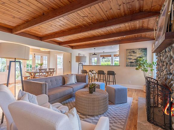 Complete bliss awaits you at this Carmel Woods paradise. An open layout and expansive windows draw in endless fresh air and natural light, blanketing the interior with infinite openness, purity, and warmth. New flooring, paint, and light fixtures enhance the ambiance and showcase the timeless, elegant design. The ground floor of this residence is designed for both convenience and comfort, featuring two spacious bedrooms that offer peaceful retreats for family or guests. The entire second story is dedicated to the massive primary suite that boasts vaulted ceilings and has its own bathroom, living room, office/dining area, and fireplace - a true sanctuary offering the utmost in privacy and luxury. The unbeatable Carmel Woods location provides access to Carmel's coveted schools and strikes a life balance unlike any other: lost in the woods just enough to provide a serene escape, yet still only a 15-minute walk away from the riches of Carmel's vibrant downtown.