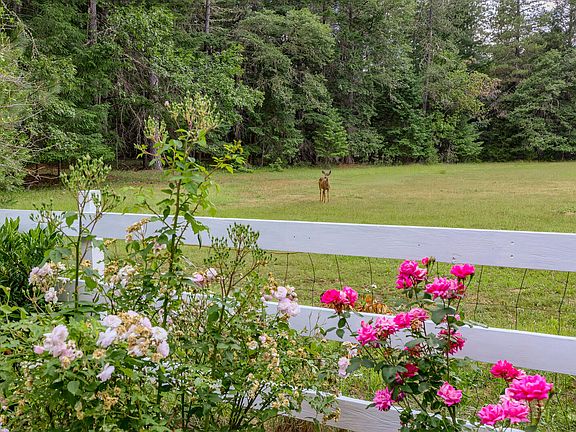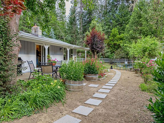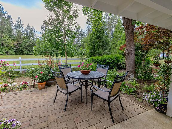 Fantastic 1413 sq ft home with year-round creek frontage. This property has two tax lots that equal approx. 11.24 flat useable acres, mountain views, a pond, large studio, great barn with corals, huge shop, detached 2 car garage and more. Wonderful 2 bedroom, 2 bath home offers a large living room, nice kitchen with large pantry, dining area, great utility room with cabinetry and storage and large backyard patio. Spacious master bedroom, attached master bathroom with tub/shower combo. Hall bathroom w/tile shower, new vinyl flooring and paint. Many updates include new interior & exterior paint, new HVAC system, new carpet. Oversized and finished shop offers shelving and 220 power. The shop, garage and studio have new exterior paint. Great pasture area, mature trees, fencing & cross fencing. Large barn offers 2 stalls, tack room, shelving, troughs & extra storage shed. Enjoy the peaceful and beautiful grounds of this property. Move-in ready.