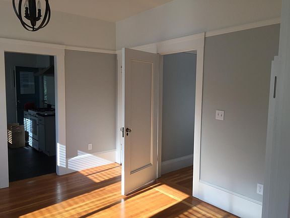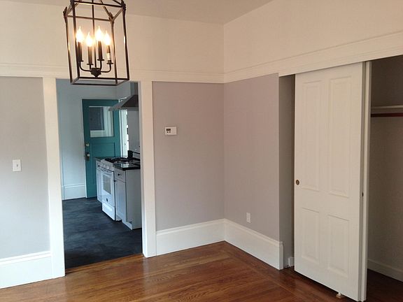 Renovated second floor apartment one block from Park Street shops, restaurants and transit. Living room, dining room and one bedroom. Hardwood and slate tile floors throughout, shower in bathtub, original built-in cabinets in dining room, on-site shared coin laundry, garage parking for one small car, 3 large closet spaces, new electrical and plumbing. Owner pays for garbage/recycling and water. Tenant pays for electricity and gas.