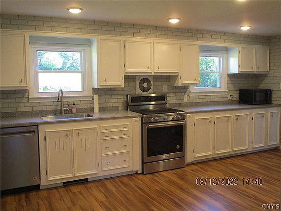 Charming remodeled Cape Cod in the Town of Oswego. Situated on just under 6 acres, this Home features 4 bedrooms, 2 full bathrooms, and additional space for an office right off the living room. The many updates include: new roof, all new Kitchenaid appliances, Corian countertops, new plumbing, updated Electric, windows throughout, additional insulation, new flooring, Commercial hot water heater. Open floor plan with a Natural gas Bluestone fireplace adds allure to the living room. Also, a full size Bathroom and laundry area were added during the renovation. 2 car garage with storage area above. Home is only minutes away from downtown Oswego. With central air and low Utilities the home is move in ready!