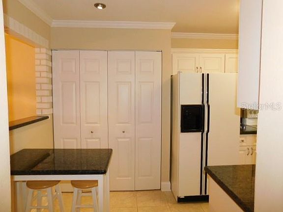 A must see ground floor unit in the very desirable and nicely maintained Villas At Countryside. Enter to the kitchen with a breakfast nook and large pantry on your right. Tasteful updates including wood cabinets, granite countertops and a tile backsplash in the kitchen. Living Room/Dining area with newer 5" baseboards and crown molding in the living areas and bedrooms. The main bedroom has sliders that open to the rear porch. Newer doors throughout. Nicely updated bathroom. Relax in the huge rear enclosed patio, the perfect spot for your morning coffee and for entertaining. Enjoy the convenience of inside laundry with a stackable washer & dryer included. Assigned covered parking spot comes with the unit. There's a community pool & shuffleboard court. Plenty of shops, dining & entertainment options all nearby. Easy access to top rated area beaches. Monthly maintenance fees covers grounds maintenance, water, sewer, & trash. Truly maintenance free living in the much sought after & centrally located Countryside area! No age restrictions.