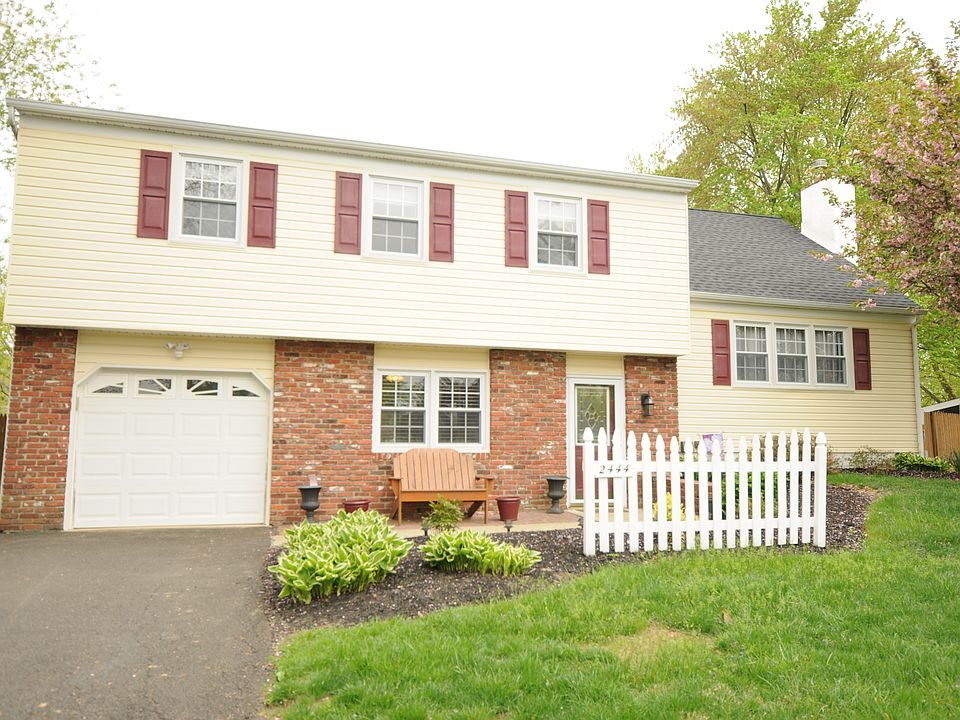 Beautifully updated and meticulously maintained spacious 4 Bedroom 2.5 bath split level in desirable Warrington Village. This home welcomes you with the new paver patio and picket fence at the entrance into the attractive entryway with hardwood floors. The lower level offers a renovated familyroom with sliding doors opening out to the large backyard and rear paver patio. Off the familyroom is a great space that is being used as an office. The Main Level has an open flow from the comfortable Living room, anchored by a gorgeous modern brick fireplace and a full wall of bright airy windows, into the dining room and eat in kitchen complete with 42" cherry cabinets and space for a 6 seat table. Kitchen has been recently updated with new tile floor, granite countertops and range hood. The Upper Levels brings you to the Master Bedroom with double closets and en suite master bathroom. Three other large bedrooms with great closet space complete the upper levels. Dual Zone Air Conditioning keeps the house comfortable in warmer weather. Some of the many improvements include new roof (2014), new hot water heater & boiler (2010), paint, carpet and ceiling fans in bedrooms, living room and dining room. Too many improvements to mention. Unfinished basement offers more than enough storage and additional hang out space. Close to parks, swimclub, golfcourse, schools, shopping and entertainment. This is a very warm and inviting home. Schedule your showing today!