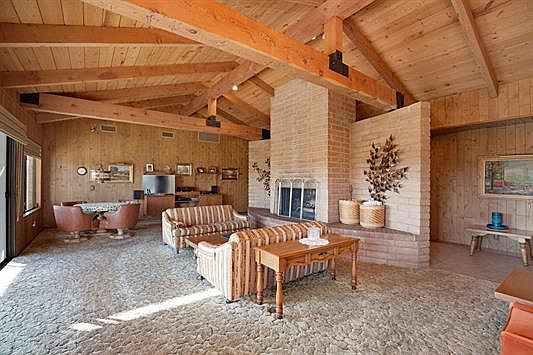 Top of the hill, private location, sweeping views! Active avocado grove. Mid-century modern design. 2,600-square-foot home in Avocado country, large glass windows, built-in shelving, stone accents, and vaulted ceilings.