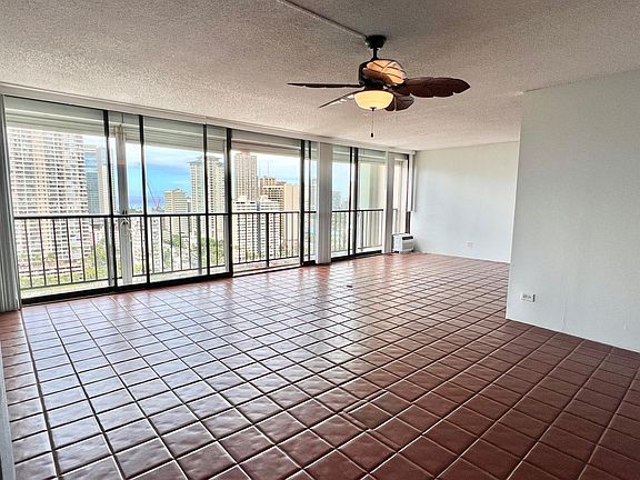 Discover the island living in this one-bedroom (converted into large studio) condo with some ocean views and spacious interiors, bright and airy. Conveniently located by Iolani School and Ala Wai Elementary School. Not far from University, Waikiki, parks, and freeway access, this residence offers both tranquility and accessibility in one package. Recent upgrades include the replacement of a large window air conditioner just last year, ensuring your comfort year-round. New installed vertical blinds, striking a balance between aesthetic appeal and functionality. Relish breathtaking sunsets from the vantage point of the high-floor unit, a truly rare find with only six apartments per floor. Indulge in the myriad of amenities, including a refreshing pool, saunas, and convenient gas BBQ grills. The added security of secured entry gates leads to your covered parking stall, ensuring both peace of mind and convenience. A dedicated resident manager with an adjacent office ensures prompt assistance, while the grand tiled entry lobby welcomes you with seating and a mesmerizing fish tank meticulously maintained by the resident manager. Rented by brokerage and length at your choice. Contact us via email today. Facts and features: Parking:1 Garage space Bedrooms & bathrooms Bedrooms: 1 Bathrooms: 1 Full bathrooms: 1 Flooring: Ceramic Tile Cooling features: Window Unit(s), Ceiling Fan(s) Appliances included: Dishwasher, Disposal, Dryer, Microwave, Range Hood, Range/Oven, Refrigerator, Washer Window features: Blinds Total interior livable area: 810 sqft Pool features: Association View description: Diamond Head, Golf Course, Marina/Canal, Ocean, Sunset Waterview: Marina/Canal,Ocean Security Security features: Security System, Smoke Detector(s), Key Community features: BBQ, Meeting Room, Recreation Area, Recreation Room, Resident Manager, Sauna, Trash Shute. Monthly Rent: 12 months or longer: $2250/ Month+ GET 4.714%. Renter's insurance is required. Utilities included: Cable TV, Water, Hot Water, Internet Service, Sewer.