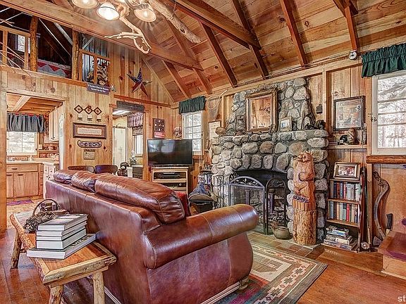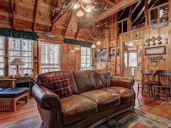 A remarkable mountain retreat just steps from the Upper Truckee River, this cabin offers an incredible living area with two bedrooms plus a sleeping loft and bonus area over the kitchen, which can be used for sleeping and/or storage. Cabin currently sleeps up to 8 and is being sold fully furnished. Includes 30amp power and water hookups at the driveway for RV/Camper or EV charging. The deck stretches the length of the cabin where you can enjoy views of the river and aspen groves while relaxing in the well-shaded surrounding. This is USFS recreational residence on Rainbow Tract, one of the nicest, well-kept, scenic, and historic tracts in the Sierra Nevada. Location feels off-the-beaten path yet is minutes from Meyers town center and only 10 minutes from the heart of South Lake Tahoe.