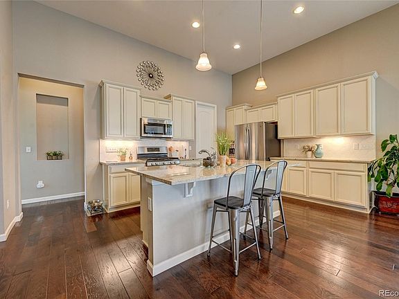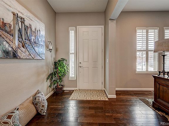 Like-new and spotless turnkey gem in Vista Ridge, just steps from the award-winning Colorado National Golf Club! *This low-maintenance ranch home has lots of natural light with an open, spacious, and well-designed floor plan in which the great room, dining room, and kitchen flow together. *Ideal layout for families, remote workers, and home schoolers. *Plantation shutters throughout the home. *Kitchen: upgraded stainless-steel appliances, 42" cabinets, granite counters, and eat-in granite island. *Great room: a stacked stone fireplace with mantle. *Primary bedroom: two walk-in closets, coffered ceiling, and window bench. *Five-piece primary bathroom: granite counters, a large soaking tub, and two vanities. *Office: easily add a door/closet to convert to a third bedroom. *Full-sized unfinished basement: 9-foot ceilings, tons of storage, and a subfloor.