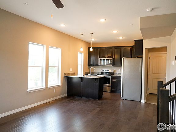 This convenient, spacious, two-bedroom town home is located on the western edge of the bustle of Ft. Collins, in a building that is adjacent to open space with an amazing view of the Front Range. Quiet neighborhood and friendly community. Two bedrooms up with a large master bath and another full bath for the other bedroom. Laundry hook-ups located on main level in a small mud room off the garage. The spacious kitchen, dining area, and family room have beautiful hard-wood flooring in an open floor plan. All exterior landscaping and maintenance is included!