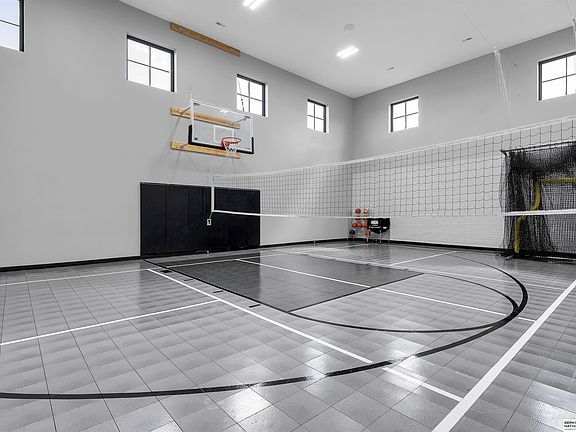 The epitome of luxury living in the prestigious Ridges neighborhood! This 1.5 story home offers every amenity from an indoor sports court to a beautiful swimming pool in the backyard. Boasting 6 bedrooms, 6 bathrooms, & a host of high-end features, including a custom kitchen w/ built-in fridge, wine fridge, & butler's pantry, this home is designed for both comfort & style. The main floor includes engineered hardwood floors, an office, & flex room. The large primary suite has heated floors & a steam shower, plus a convenient laundry area in the closet. Upstairs, discover 3 spacious bedrooms, each w/ a custom closet, laundry room, & a kid-favorite secret room behind a bookcase! The finished lower level features another bedroom & bathroom, flex room, wine room, full kitchen, workout space, & an impressive 30x45 sports court for year-round recreation (currently set up to accommodate baseball/softball, basketball, pickleball, & volleyball). Outdoors, enjoy the pool, hot tub, and deck.