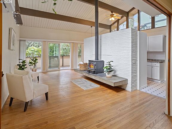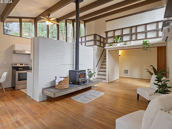 Come be a part of a small community located on a quiet, dead end street in a well established neighborhood in the SW Hills. On a beautiful lot surrounded by old growth trees and the peaceful sound of the nearby creek. This unique house features plenty of natural light with its incredible array of windows throughout Updated and move in ready. Brand new kitchen cabinets, sink, stainless appliances, countertops, and tile backsplash. Completely remodeled bathroom, hardwood floors, new mini split heating/cooling system, water heater, and electrical panel. Upper Loft would make a great office, bonus room, or use as second bedroom. Roof/2016. Laundry room located in the back with washer/dryer included. Washington County taxes, easy access to HWY 26 and just minutes to downtown Portland. Don't miss out on owning this unique space.