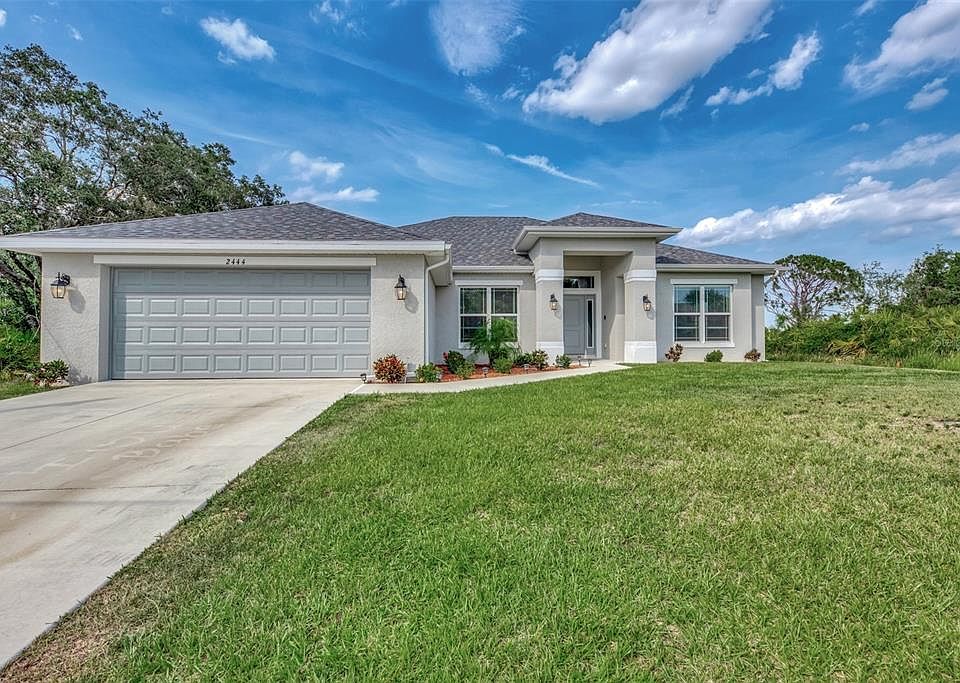 Newly built in May 2021. Step into this gorgeous open concept floor plan featuring - 4 bedrooms + den/office room, 2 bathrooms and an OVERSIZED 2 car garage. Split floor plan with a fabulous flow for everyday living and entertaining. The master bedroom has 2 large walk-in closets, leading to your private bath. There is vaulted ceilings in the living room and kitchen and 9ft sliding glass doors to provide plenty of natural light. Enjoy the privacy of the fenced backyard perfect for relaxing or entertaining family and guests. If you want to add a pool there is plenty of room and the master bedroom and 2nd guest bedroom have doors leading out to the patio for great access to the backyard area. Fantastic location to Warm Mineral Springs, North Port Aquatic Center and the Morgan Center. Great shopping and restaurants near by as well. 10 minutes to Wellen Park featuring the Blaves stadium and 30 minutes to multiple beaches!!There is No HOA or CDD fees in this area. Not in a Flood Zone! This is a must-see property that is priced right and move-in ready. Schedule a showing and make this gorgeous home yours today.--