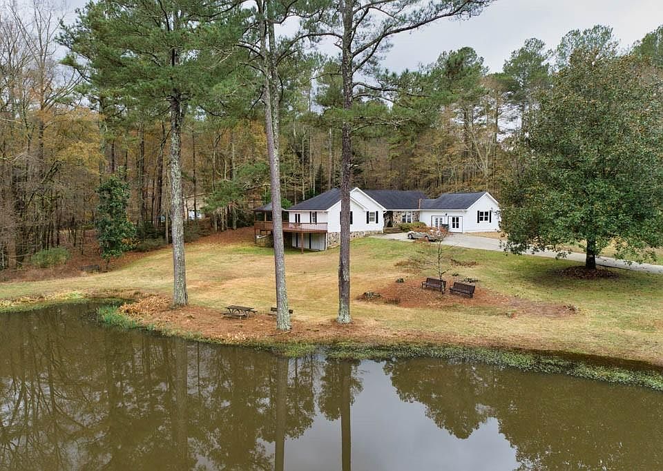 This is the lifestyle you have been dreaming of. Large, Fully stocked lake all to yourself on 5 acres. Lake is professionally stocked with catfish and brim. This home was built by the current owner. Home offers 4 bedrooms with 2.5 bathrooms. The master bedroom has access door to large wraparound porch overlooking the lake. Basement is unfinished/garage storage with 2 garage doors. This property is breathtaking!