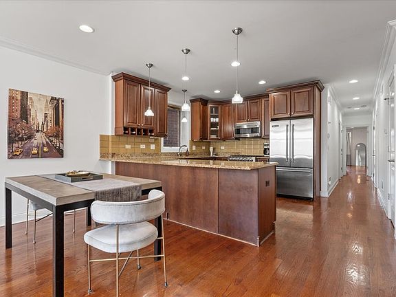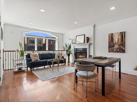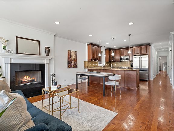 Welcome to your sun-filled sanctuary in the heart of Chicago! This spacious 4 bed/3 bath duplex down lives like a single-family home, offering the perfect blend of luxury and comfort. A dramatic wall of south-facing windows fills the open-concept living space with natural light, highlighting the hardwood floors, crown molding, and cozy fireplace. The chef's kitchen is an entertainer's dream, boasting high-end stainless steel appliances, granite countertops, abundant cabinetry, and an oversized peninsula that flows seamlessly into the living and dining areas. The expansive primary suite is a true sanctuary with two custom closets, a private balcony ideal for morning coffee, and a spa-inspired bath featuring steam shower, whirlpool soaking tub, and dual vanities. The lower level impresses with soaring ceilings, a second wood burning gas starter fireplace, a stylish wet bar, and two additional bedrooms with a full bath and generous storage. Perfectly designed for both everyday living and entertaining! This home offers unmatched space, style, and sophistication in a prime city location. In unit w/d, additional storage unit, and one exterior parking space are all included in the price. Walk out your door to Target, shopping, restaurants, and so much more!