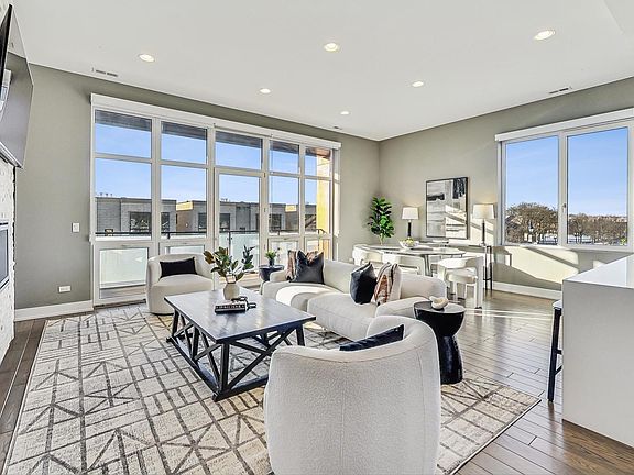 North Center better than new massive super sunny 3 bed/2 bth penthouse just a few steps away from Revere Park in the Coonley school district. This open layout extra wide simplex has 10' ceilings, 8' solid doors and gorgeous hardwood floors throughout. The living area features a sun filled south facing wall of glass windows and doors, a gourmet kitchen with quartz counters, large island, pantry, stainless steel appliances, and contemporary gas fireplace with attached 20 x 6 ft wide covered balcony. The primary master suite offers a large walk in closet and spa like bath with massive shower with dual vanity's and rear 20' x 8' deck off the bedroom. Bedrooms 2 and 3 are both extra-large with custom closets and excellent light. The direct interior access from the unit to private rooftop deck features a custom wet bar with beverage fridge. The oversized deck been completely built out with covered patio, pergola, planting beds, storage and gas and water hookup and amazing 360-degree views. Garage parking. Easy to Show. A must see!!
