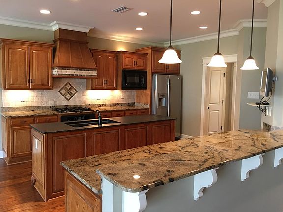 Nested between two beautiful live oaks, this property is located in the heart of Daphne in close proximity to all the Eastern Shore has to offer. This home boasts a spacious foryer with beautiful hardwood flooring that extends through the living and dining spaces, as well as the extra bonus space or 5th bedroom. With a gas fireplace with granite finishes and built-ins, the living space opens up to a large eat-in kitchen complete with granite countertops, a breakfast bar, & a spacious breakfast room. The private master suite offers tray ceilings & a huge bathroom with his & hers vanities, a soaker tub, separate shower & giant master closet. Additional bedrooms are spacious with plenty of natural light. There is a large screened in porch out back that opens up to a great patio area for a BBQ. The spacious backyard is fenced in with a storage shed. Extras include: Upgraded security system with cameras, thick crown molding & door casings, 3 car garage, bulter's pantry, bonus space, & MORE! Please call for a showing appointment. 251-273-6837 Virtual Tour: https youtu.be/Tb_LTGx19Kw