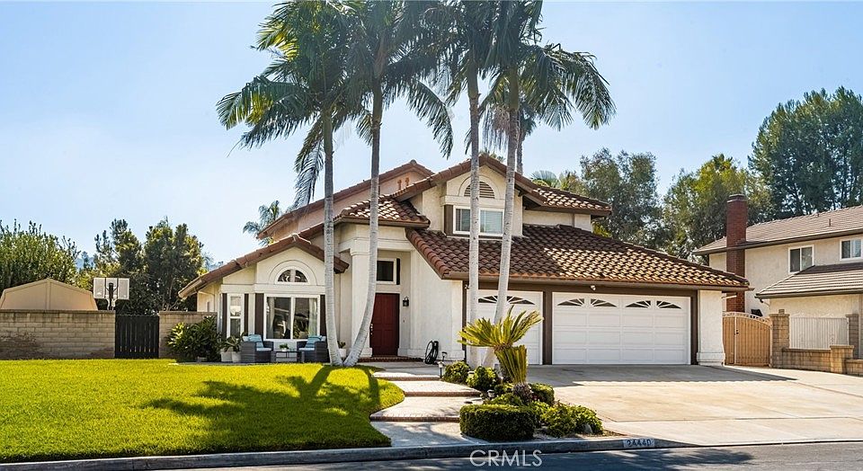 Welcome to this beautifully appointed 4 bedroom 3 bathroom home located at 24440 Via Arriba in the charming Bryant Ranch neighborhood of Yorba Linda. Spanning 2,287 sq. ft. on a generous 9,600 sq. ft. lot. This property offers a perfect blend of comfort and elegance. As you enter, you’re greeted by a spacious living room featuring vaulted ceilings and rich hardwood flooring. The formal dining room is ideal for entertaining. The family room, complete with a cozy brick fireplace, seamlessly connects to the kitchen. The kitchen is masterfully equipped with granite countertops, tile back splash, stainless steel appliances and a convenient pantry. The main floor includes a bedroom with a full bath and walk in closet, perfect for guests, multi-generational living or a home office as well as an interior laundry with additional storage and a sink. Head upstairs and discover the primary suite basking in hillside views with vaulted ceilings, a spacious walk-in closet, and a luxurious bathroom with an oversized soaking tub, step-in shower, and dual vanities. Two additional bedrooms share a secondary bathroom equipped with dual sinks. Step outside to your private backyard offering a pool sized lot, a covered patio, a built-in island with stainless steel BBQ, and a fire pit area ideal for cool weathered gatherings. Completing the exterior is a basketball area, RV parking with a dump station and a storage shed. Additional improvements include upgraded vinyl windows, air conditioning, heating and plumbing repiping. This home is zoned for prestigious schools, including Yorba Linda High School, and is conveniently located near shops, entertainment, and easy access to the 91 and 241 freeways. Don’t miss this incredible opportunity to own a remarkable home in the land of gracious living!