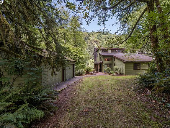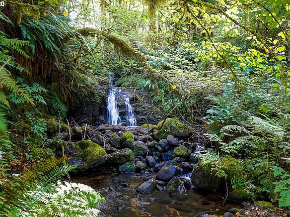 UTTER SECLUSION, RIVERFRONT ACREAGE - Long driveway, circular, leads to a 3 bdrm 2 bath hideaway on 3.29 acres. Vaulted beam ceilings, decks, loft. Bear Creek Falls is a magical forested setting on Wilson River, bordered by year round creek & 2 small waterfalls. Area is known for world class fishing. Wild & scenic, located across from State Forest land. Home to soaring eagles, elk, deer, bear and more. 15 min drive to downtown Tillamook, 30 minutes to secluded ocean beaches, an hour to Portland.