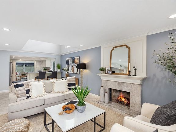 Highly Desirable 2-story Home with Office & Sunroom . . . Why? Hard to find downstairs master suite! Located in the quaint community of Lake Park, this home is situated on a cul-de-sac street. As you enter the home through a private gate, take pleasure in hearing the multi-tiered fountain. Beautiful, modern and remodeled throughout – spacious kitchen is large enough for an island & includes granite countertops, white & grey shaker cabinets, KitchenAid & GE Café stainless steel appliances w/convection gas range, counter-to-ceiling marble subway tile, under cabinet lighting, large garden window & breakfast counter. Bathrooms also updated with granite countertops, sinks, brush nickel faucets, lighting & mirrors. Master bath further updated with gorgeous, large, seamless glass walk-in shower. with 2 shower heads. Upstairs, you will find 2 bedrooms with balconies, remodeled bath & office/bonus room (could convert to small 4th bedroom or nursery). The Garland floor plan also includes open concept living room/dining room/kitchen. Living room has gas fireplace with marble tile & mantel and custom built-in cabinets & shelves. This home also features inside laundry (Samsung W/D included), laminate & marble flooring, vinyl windows & doors, custom window shades, updated baseboards, designer paint, magic screens on doors and built-in book shelves on stairway. A unique feature of this home is the permitted 11’x14’ sunroom addition off the kitchen (not counted in the property sqft.). Enjoy the California weather by dining Al Fresco in your private back yard, which includes a retractable awning for sun protection, or relaxing in the cozy sunroom. Located just blocks to Sea Country Community & Senior Center and LN Elementary School, 1/2 mile to LN Regional Park & minutes to the 73 Toll Road & I-5 freeway. In 10 minutes you can see the ocean at Laguna Beach & in 30 minutes you'll be at Disneyland – What a Great Location!